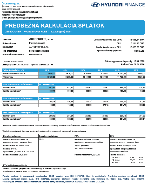 0 % Finančný leasing, Akontácia od 15 %, Spotrebný úver, Operatívny leasing